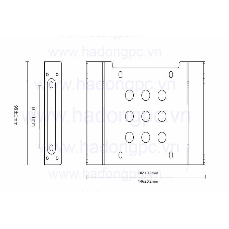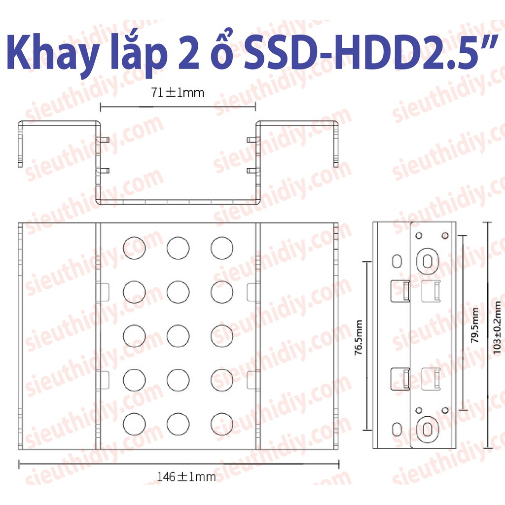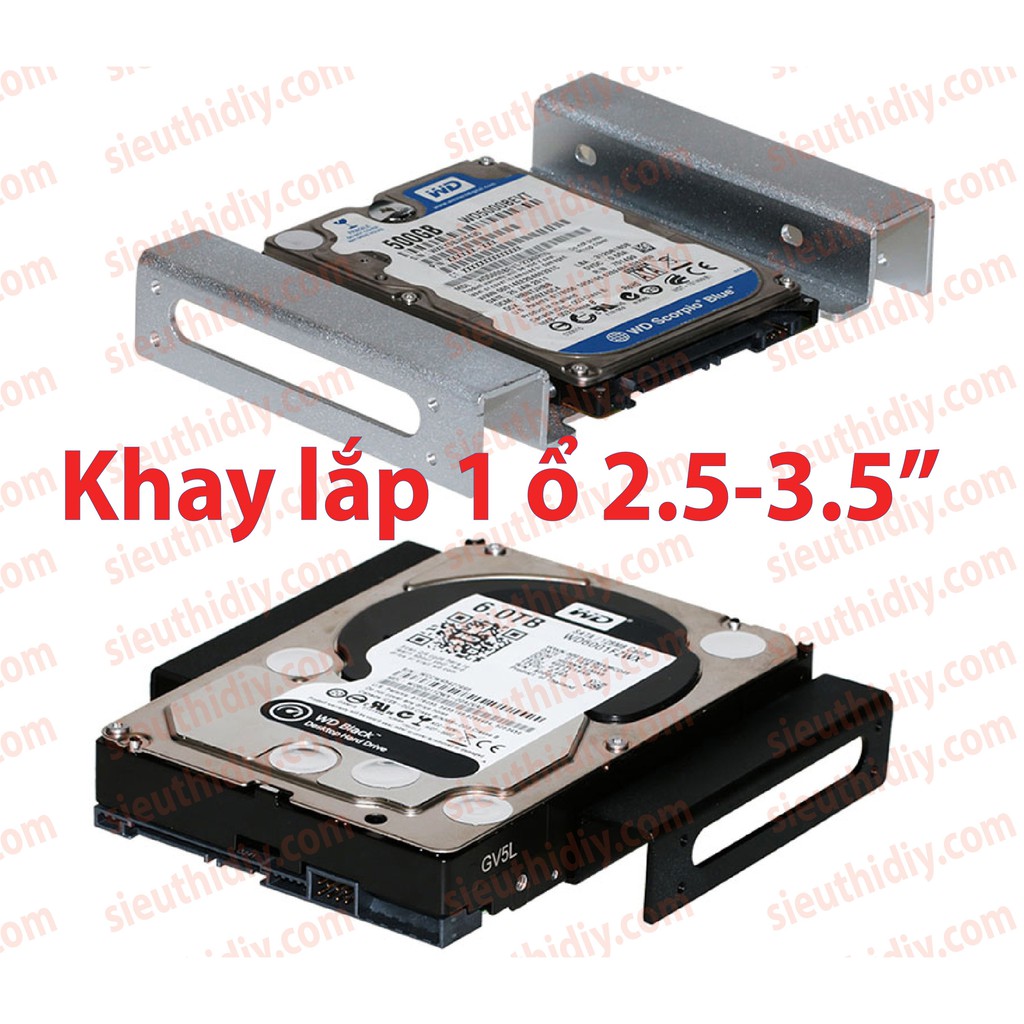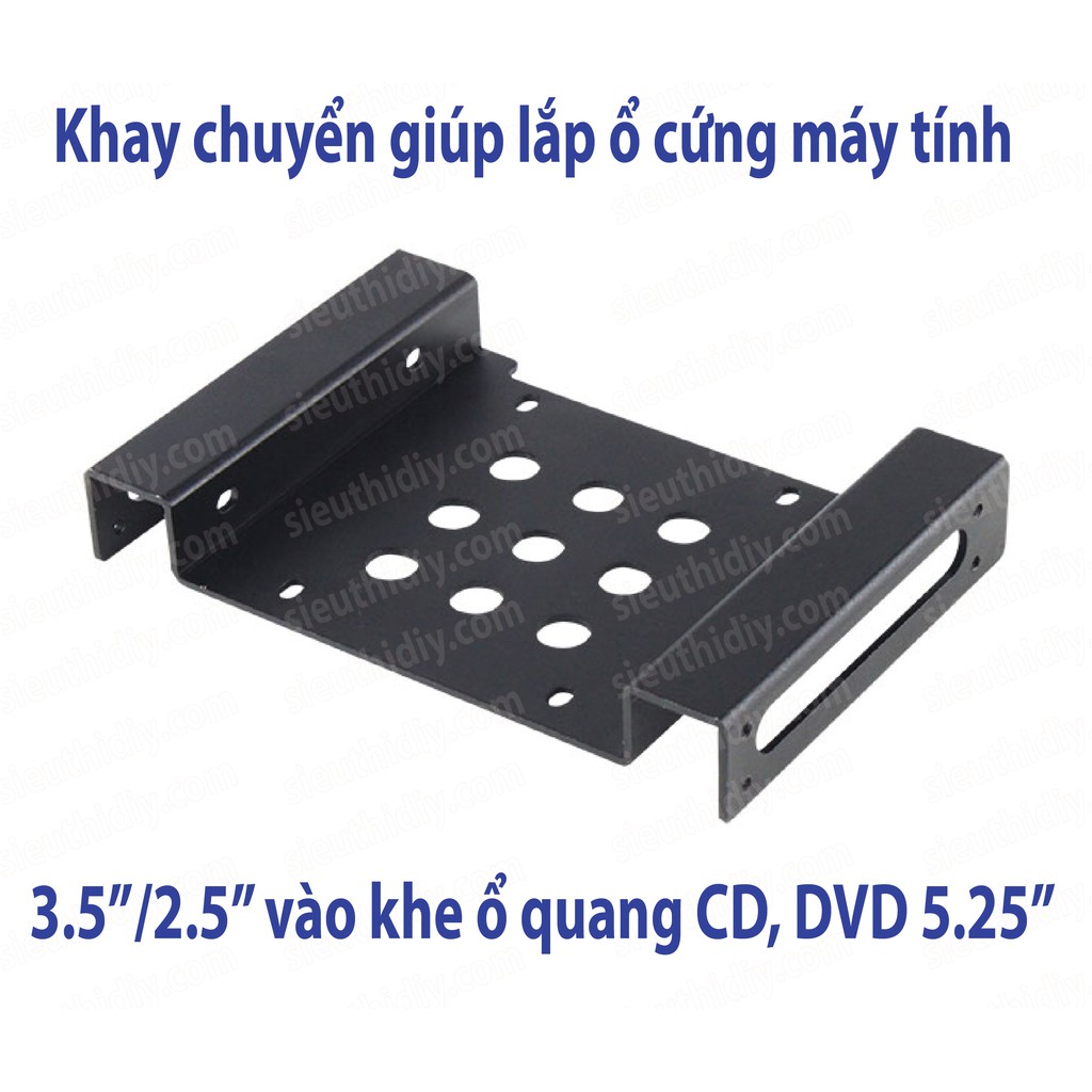 Khay nhôm HDD 3,5", SSD 2.5" lắp chỗ ổ DVD 5.25" dày 2mm, có lỗi thoáng giúp tản nhiệt tối ưu cho ổ cứng HDD và SSD.Ứng dụng: