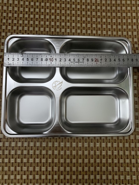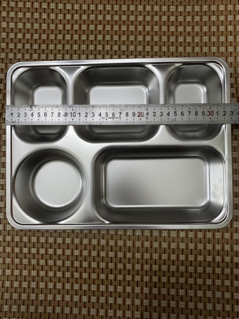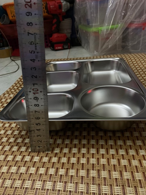 Khay sâu và dày , chất liệu inox an toàn cho sức khoẻ người dùng tiện dùng cơm văn phòng , căn tin , xuất ăn công nghiệp . Khay nhỏ 4ngăn và khay lớn 5ngăn như hình
