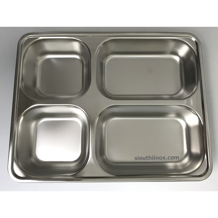 Khay thiết kế hiện đại với 5 ô đựng đồ ăn. Chất liệu inox đảm bảo an toàn thực phẩm. Khay thiết kế sâu lòng, bo góc mịn, dày dặn, chắc chắn.