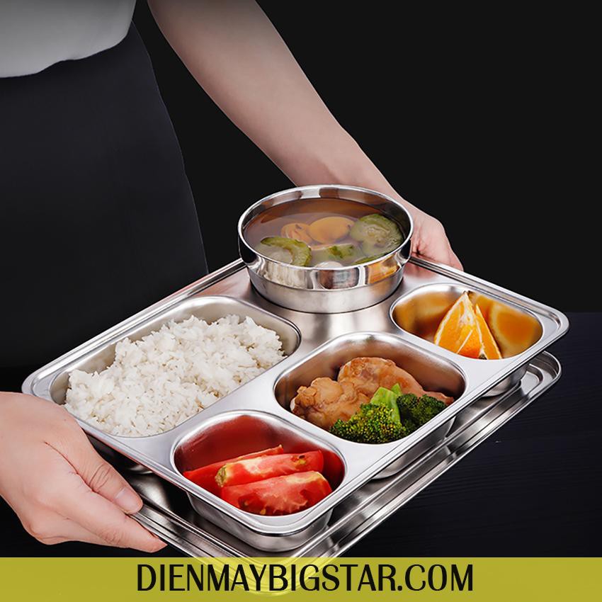 Khay Cơm Văn Phòng Xí Nghiệp 5 Ngăn Inox Cao Cấp 304, Sâu Lòng, Đảm Bảo Vệ Sinh