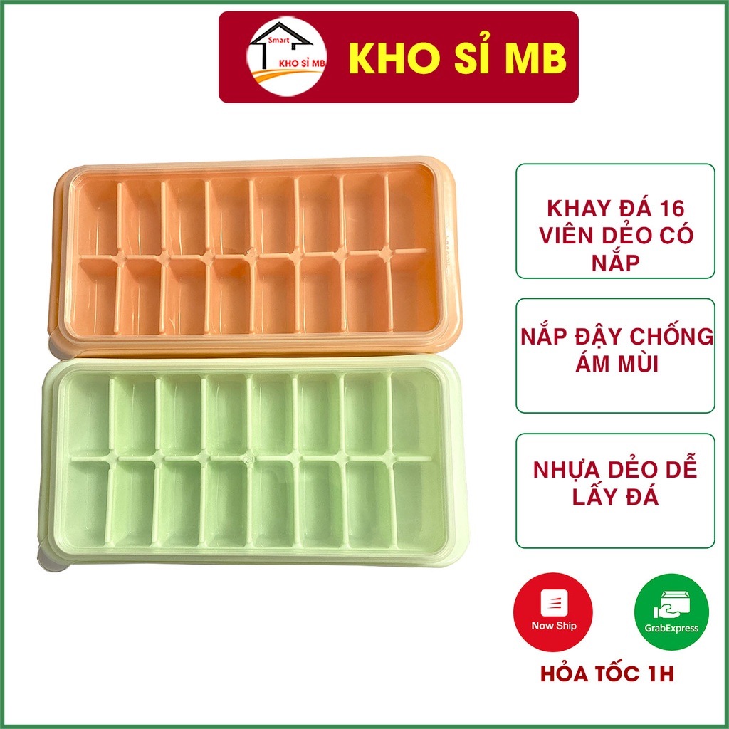 khay đá có nắp đậy 16 viên , hộp trữ thức ăn trẻ em kèm nắp nhựa Việt Nhật - kho sỉ mb