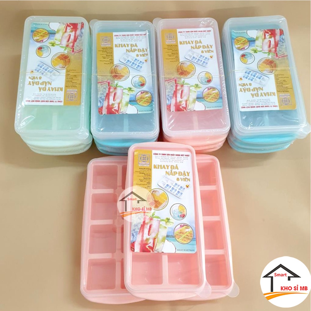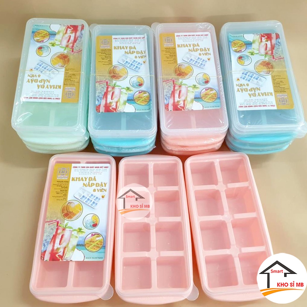 khay đá có nắp đậy 8 viên - làm thạch, đựng đồ ăn dăm chất liệu nhựa dẻo không độc hại -nhựa việt nhật