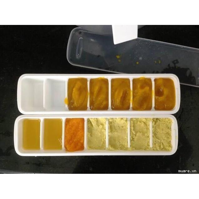 Khay gồm 07 ngăn nhỏ tiện lợi, có nắp đậy đảm bảo an toàn vệ sinh tránh bám mùi của đồ đông lạnh khi để cùng ngăn.