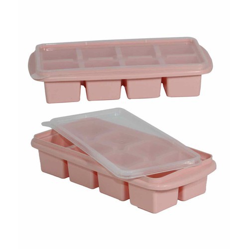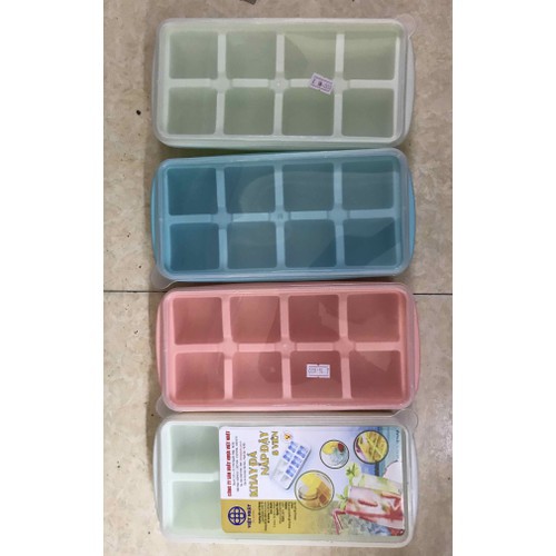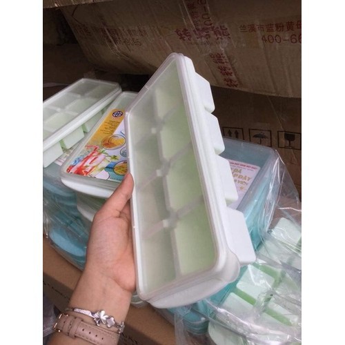 - Mỗi khay có 8 ô nhỏ để làm đá, có nắp đậy kín, thiết kế tiện dụng để lấy đá khỏi khay. Ngoài ra rất các mẹ có thể dùng để làm hộp chia đồ ăn dặm cho các bé lợi và an toàn.