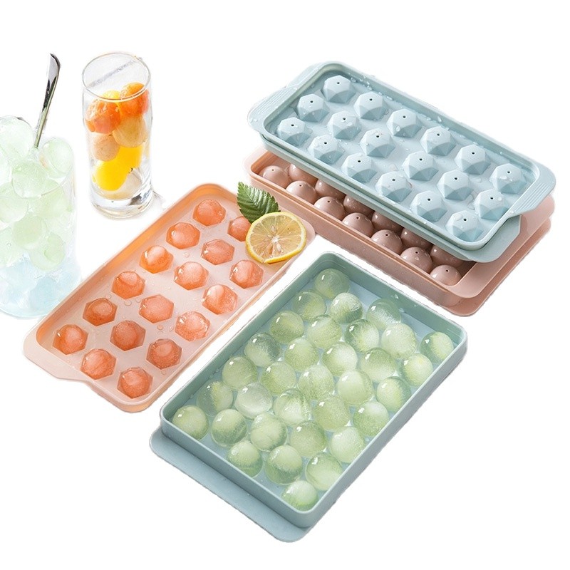 Khay đá, khay làm thạch có nắp đậy hình tròn bi, hình kim cương