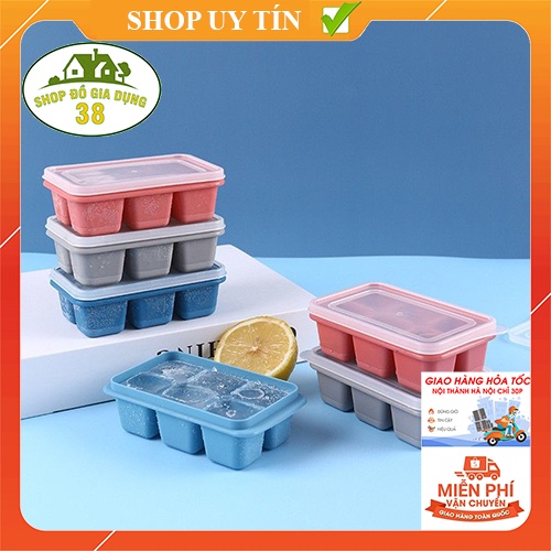 [D41] Khay Đá Khay Trữ Đông Ăn Dặm, Khay Làm Thạch Rau Câu Bằng Silicone 6 Ô Có Nắp Đậy Tiện Lợi