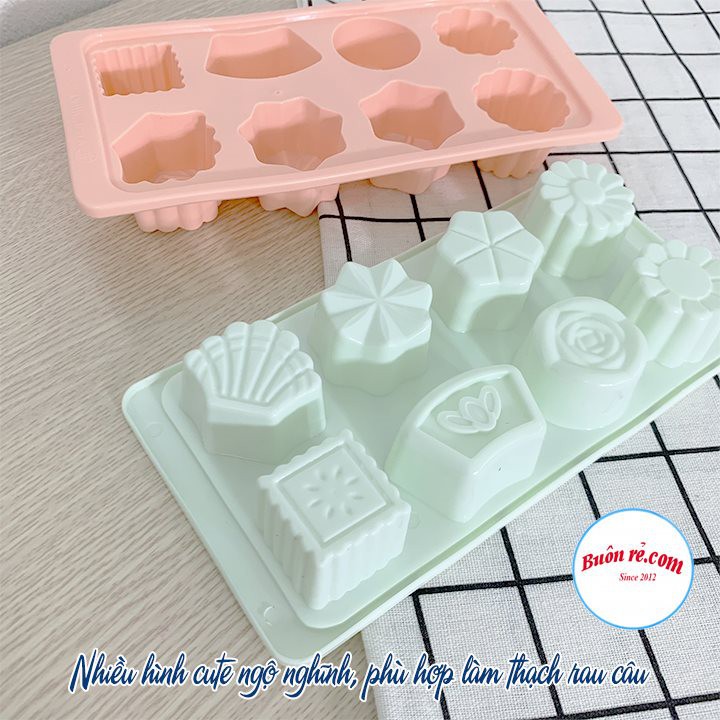 Khay đá, khuôn thạch 8 viên (MS 6921) Việt Nhật nhựa dẻo làm thạch rau câu, khay chia ăn dặm cho bé 01236