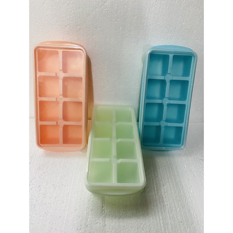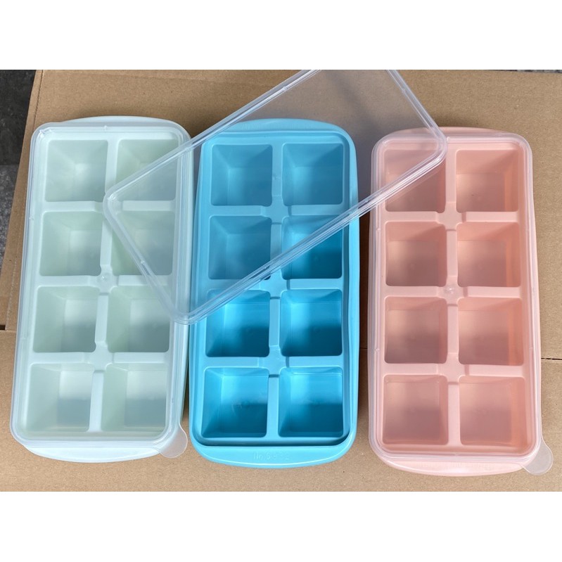 Giới thiệu khay đá nhựa dẻo cao cấp,khay chia đồ ăn 8 viên có nắp đậy