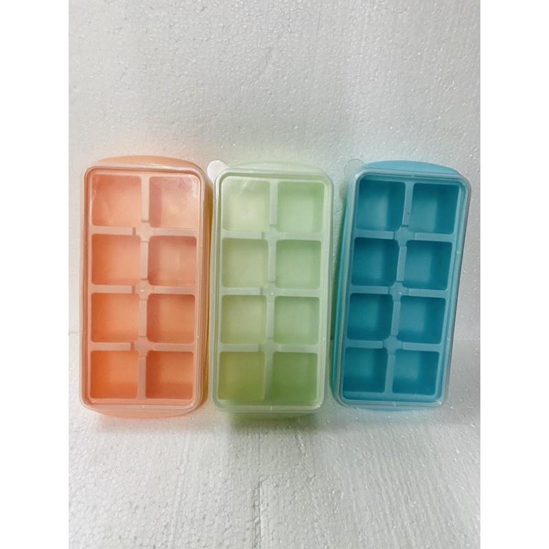 khay đá nhựa dẻo cao cấp,khay chia đồ ăn 8 viên có nắp đậy