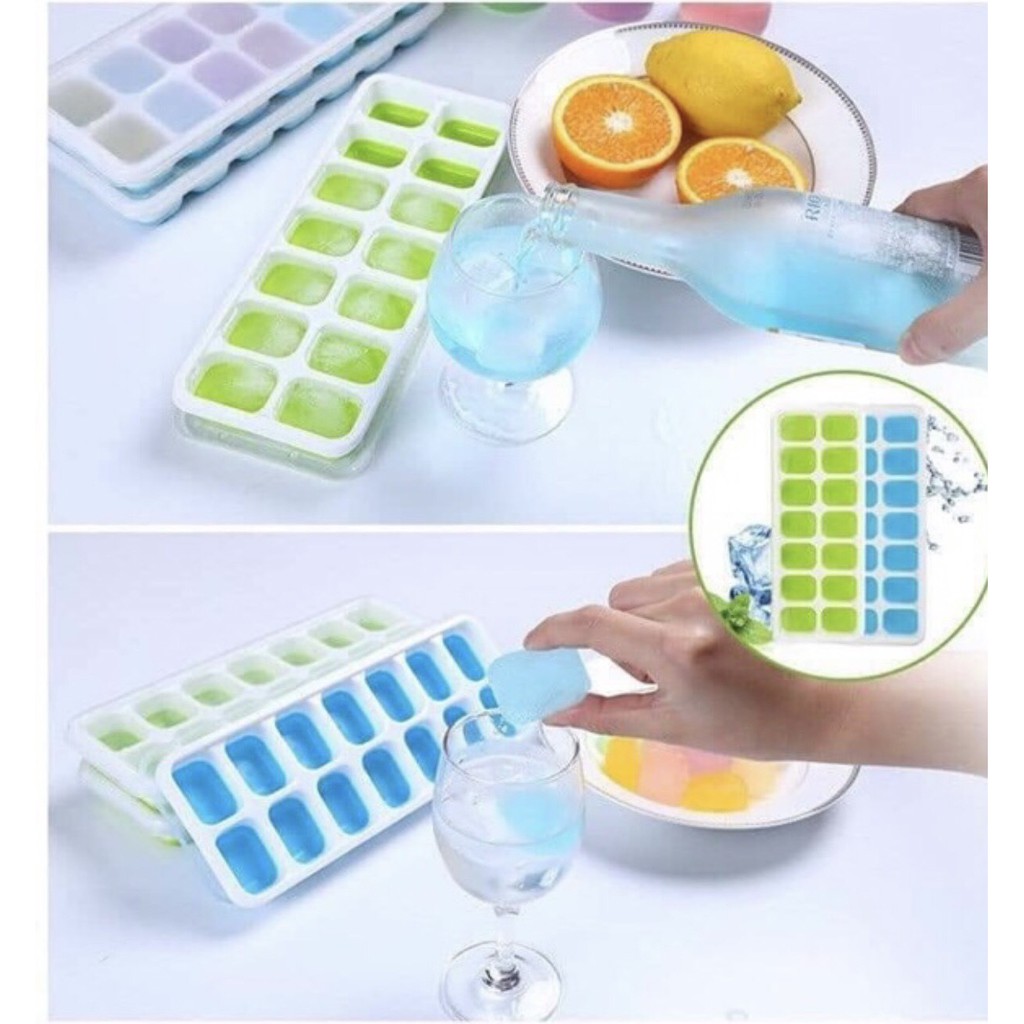 Nhà cửa & Đời sống > Dụng cụ nhà bếp > Khác || Khay đá silicon (14 ngăn) có nắp đậy an toàn ko dính mùi thực phẩm,làm rau câu,làm kem,khay trữ đông thực phẩmCòn hàng