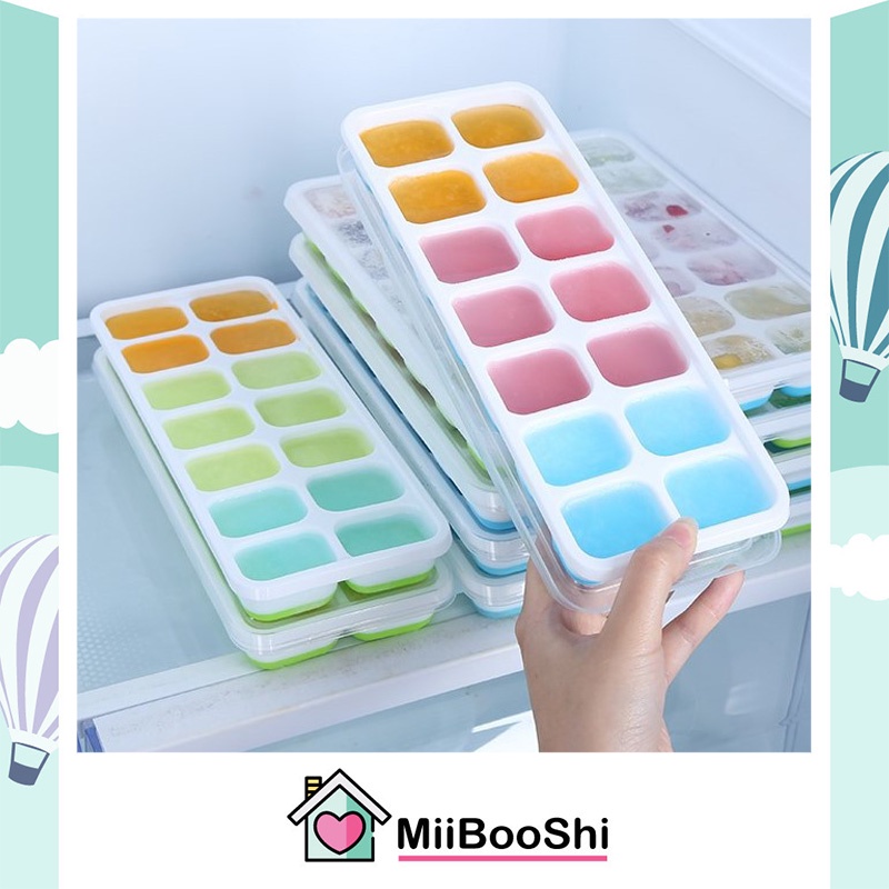 Khay đá silicon có nắp 14 viên làm đá thạch chống mùi MiibooShi AA555421