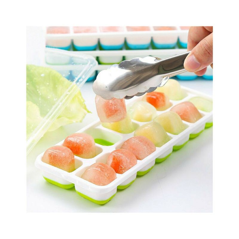 Khay Đá Silicon Có Nắp Đậy 14 Viên, Khay Đựng Đá Tủ Lạnh, Làm Đá Thạch Kem Bảo Quản Chống Mùi Tuyệt Đối