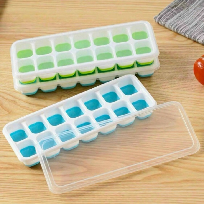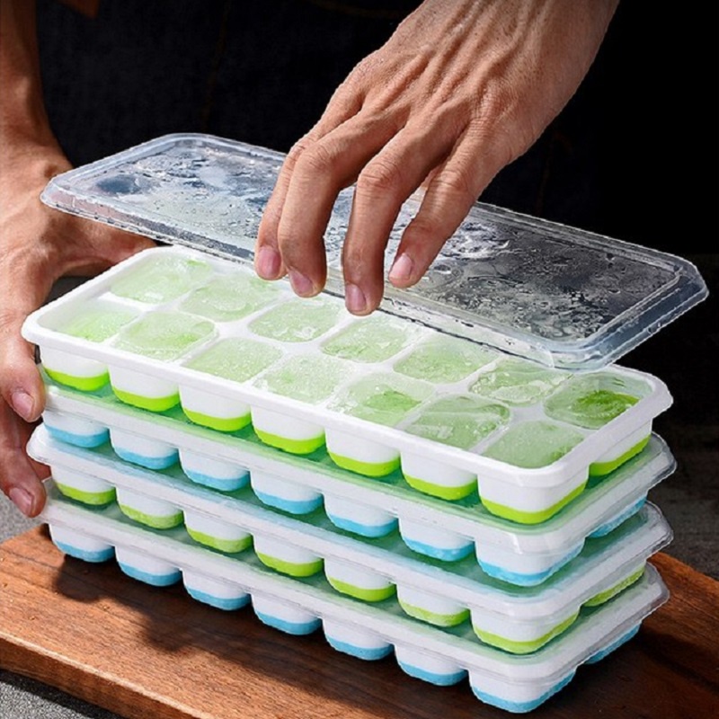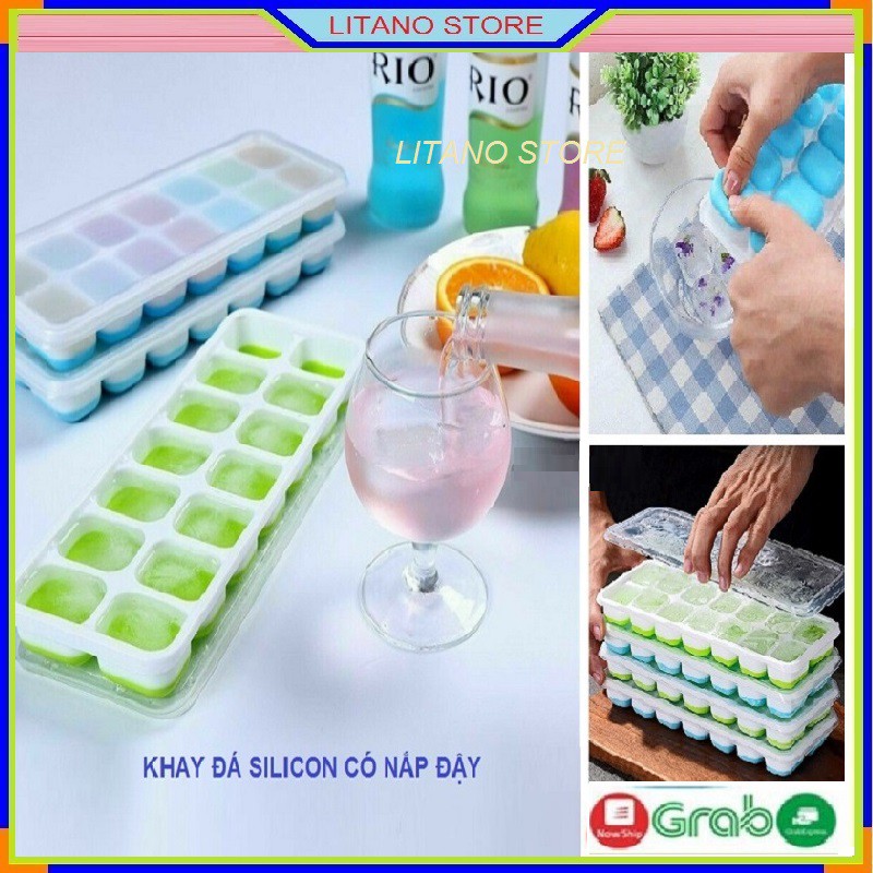 Khay Đá Silicon Có Nắp Đậy 14 Ô Lấy Đá Dễ Dàng, Bảo Quản Đá Viên Sạch Sẽ Tránh Mùi Tủ Lạnh Và Bụi Bẩn