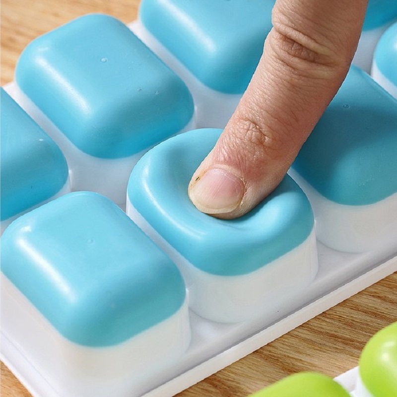 - Chất liệu: Silicone thực phẩm an toàn cho sức khỏe con người; đáy silicon mềm giúp việc sử dụng và lấy đá viên, đồ trữ đông ra dễ dàng hơn so với các loại khay đá khác