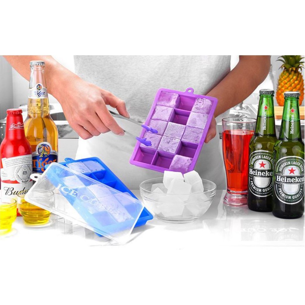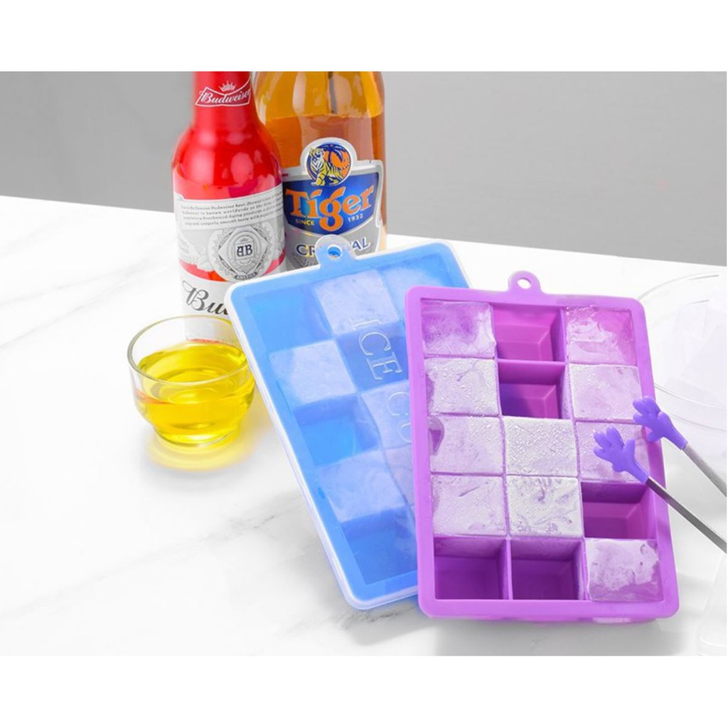 Khay Đá Silicon Viên Lớn 15 Viên Có Nắp Đậy – Khuôn Silicon – Dụng Cụ Làm Đá Viên – GB038