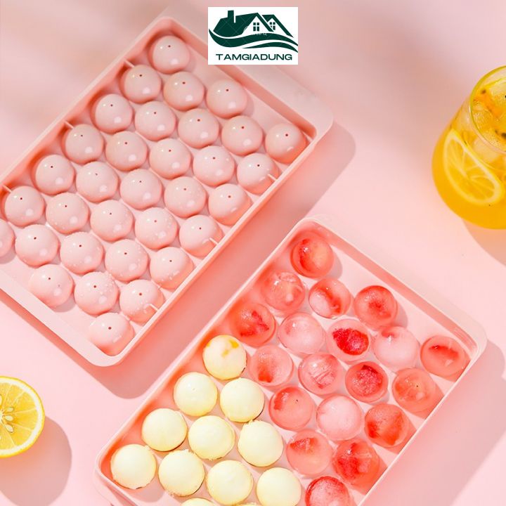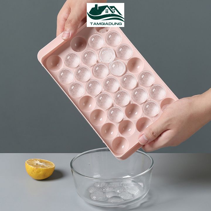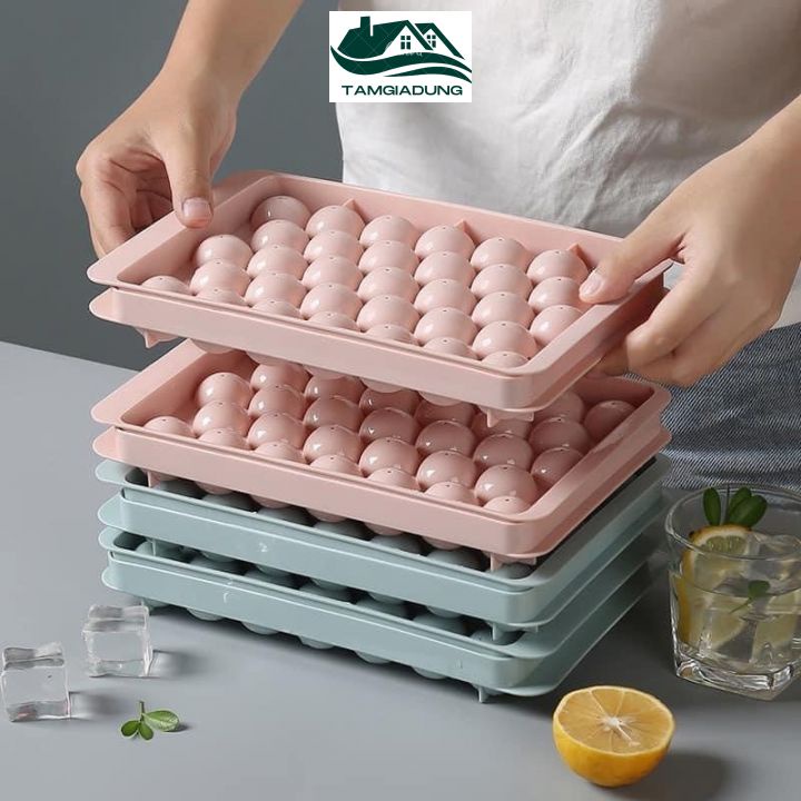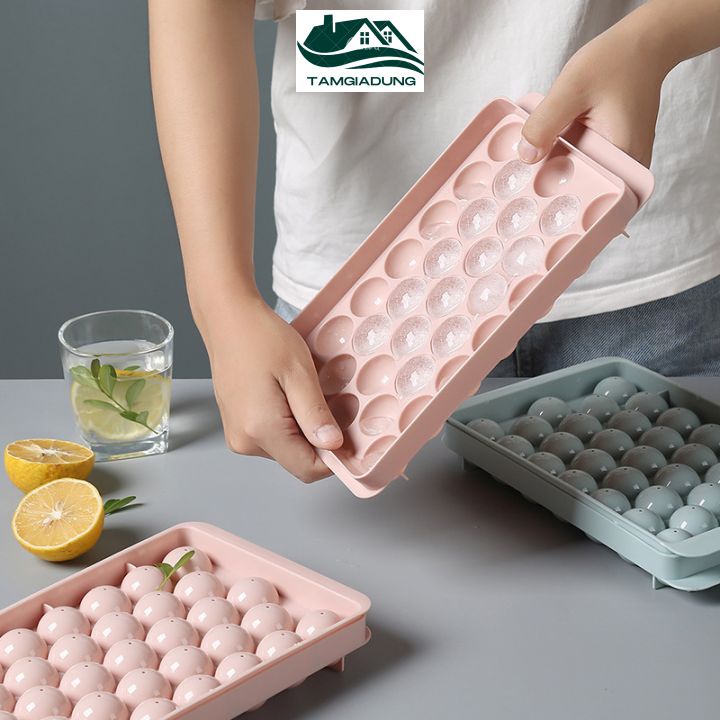 Khay Đá Tròn Khay Làm Đá Khuôn Làm Thạch Bi Tròn Nhựa 33 Viên Có Nắp Đậy Vệ Sinh
