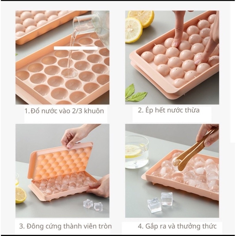 Giới thiệu Khay đá tròn, khuôn làm đá có nắp đậy thông minh hình viên bi 33 viên