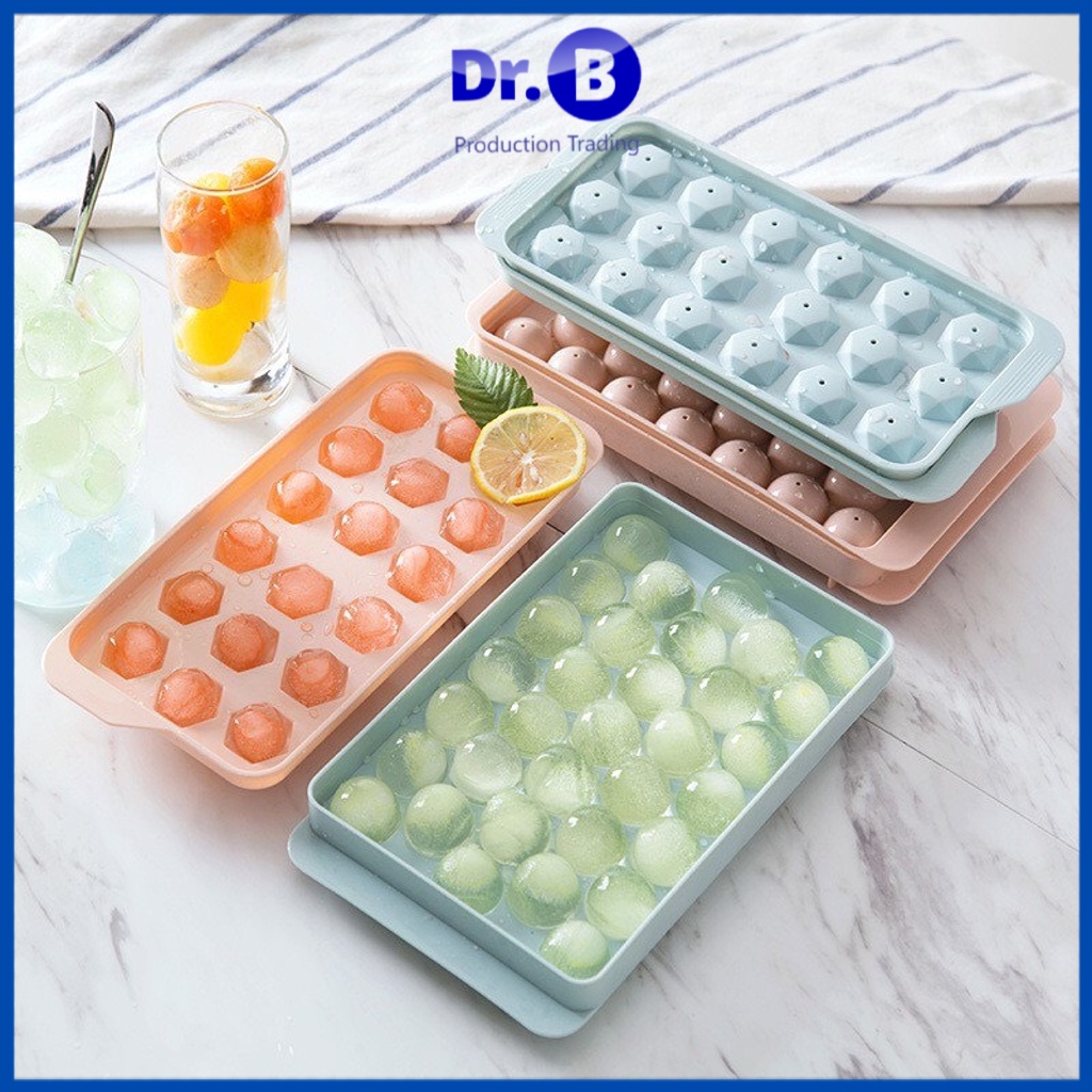 Khay đá tròn, khuôn làm đá có nắp đậy thông minh hình viên bi 33 viên