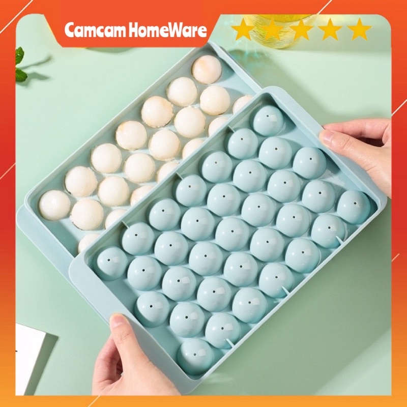 Nhà cửa & Đời sống > Bộ đồ bàn ăn > Bình nước & phụ kiện || Khay đá tròn tủ lạnh 33 viên CamCamHomeWare , khuôn làm đá có nắp đậy thông minh hình biCòn hàng