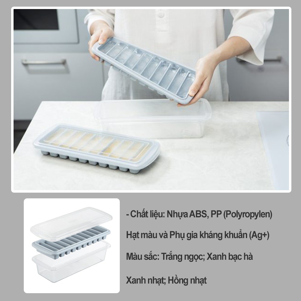 Khay đá - vỉ làm đá tủ lạnh khay 10 thanh có nắp đậy bằng nhựa nguyên sinh karu inochi Nhật Bản chính hãng cao cấp KLD01=== CAM KẾT CỦA INOCHIVIETNAM ===