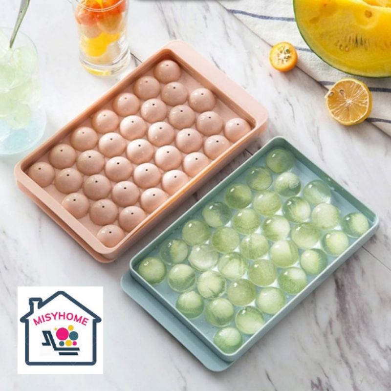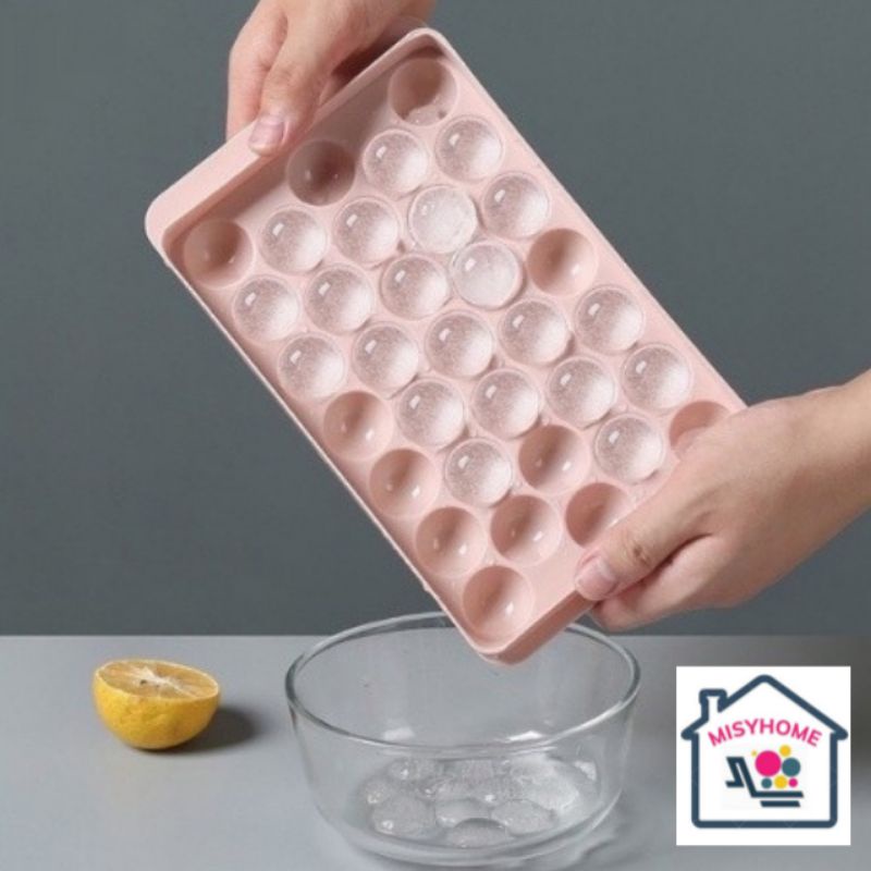 Khay đá bi tròn 33 viên Misy Home to nhỏ bỏ tủ lạnh nhựa Việt Nhật dẻo dễ lấy thương cute làm thạch trân châu rau câu