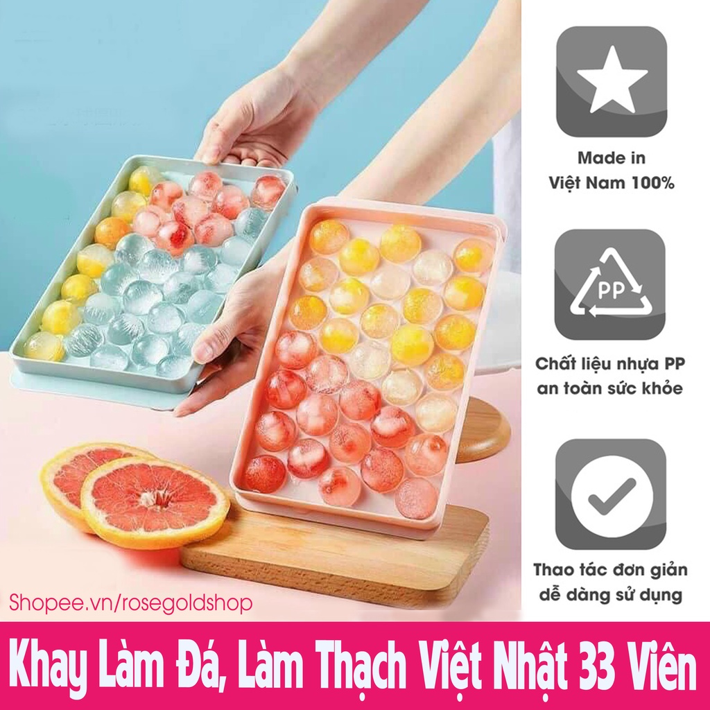 Khay Đá Viên, Thạch Bi Tròn Làm Hoa Quả Trái Cây, Khuôn Rau Câu, Khay 33 Viên Việt Nhật