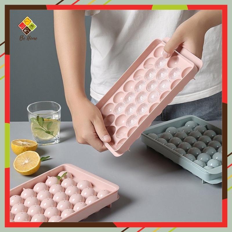 Khay đá viên tròn BEHOME khuôn làm đá có nắp đậy thông minh hình viên bi 33 viên [GIAO MÀU NGẪU NHIÊN]