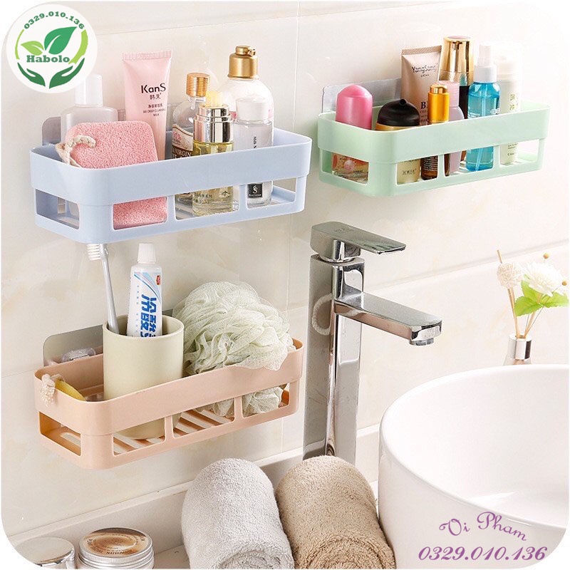 Khay dán tường nhà tắm, Kệ dán tường nhà bếp đựng đồ tiện dụng bằng nhựa kích thước 25x12x7cm.🍀HABOLO CAM KẾT