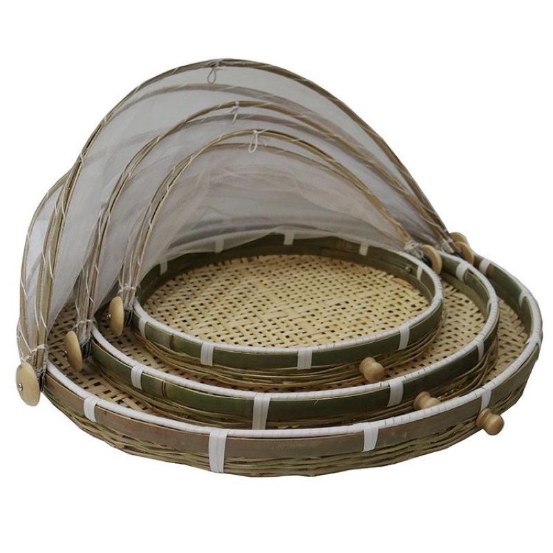 Khay đậy thức ăn bằng tre tự nhiên, có màn che bụi, lồng bàn đựng thức ăn, đồ dùng gia đình, chống ruồi, muỗi, chống bọ