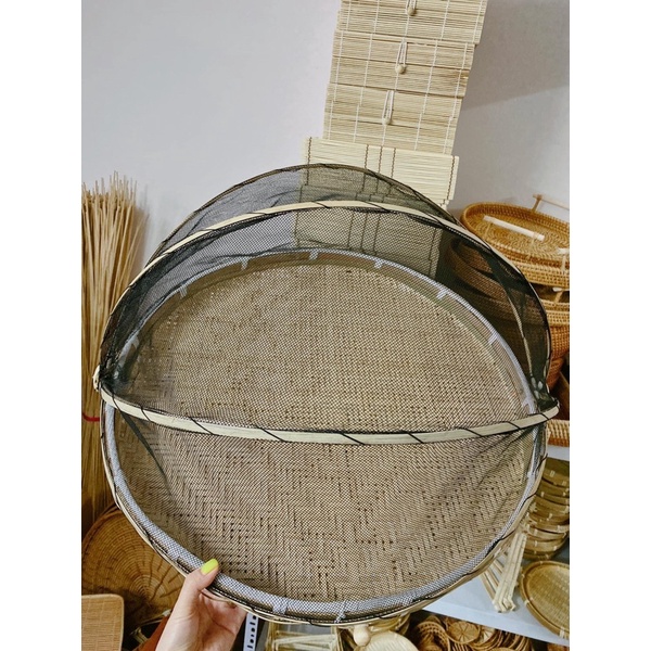 Nhà cửa & Đời sống > Bộ đồ bàn ăn > Lồng bàn || Khay đậy thức ăn bằng tre tự nhiên, có màn che bụi, lồng bàn đựng thức ăn, đồ dùng gia đình, chống ruồi, muỗi, chống bọCòn hàng