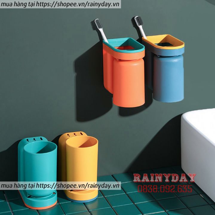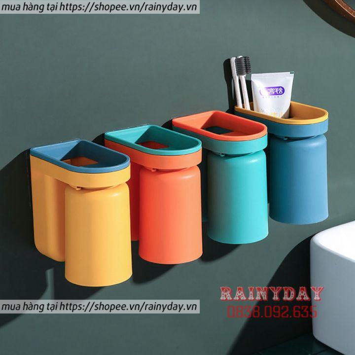 - Cốc nước súc miệng cài ngược, giữ cho cốc luôn khô ráo, màu sắc tương phản bắt mắt