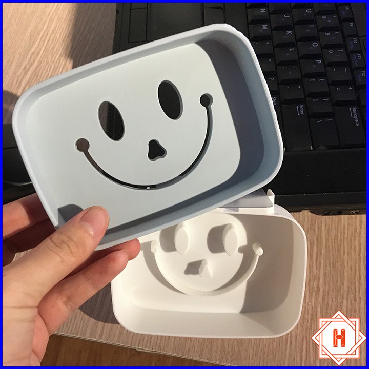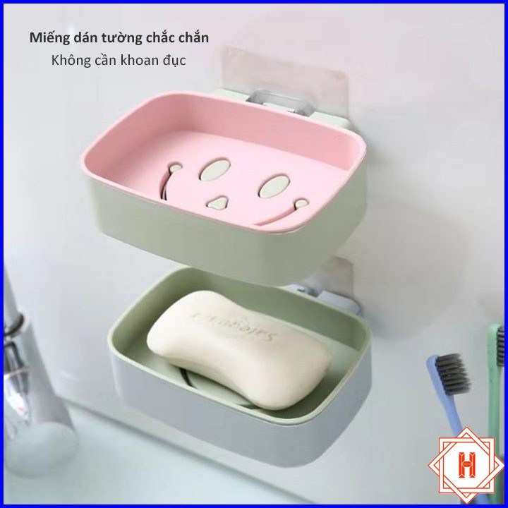 Khay Để Bánh Xà Phòng Dán Tường 2 Lớp Đáy Kín Hình Mặt Cười { H }