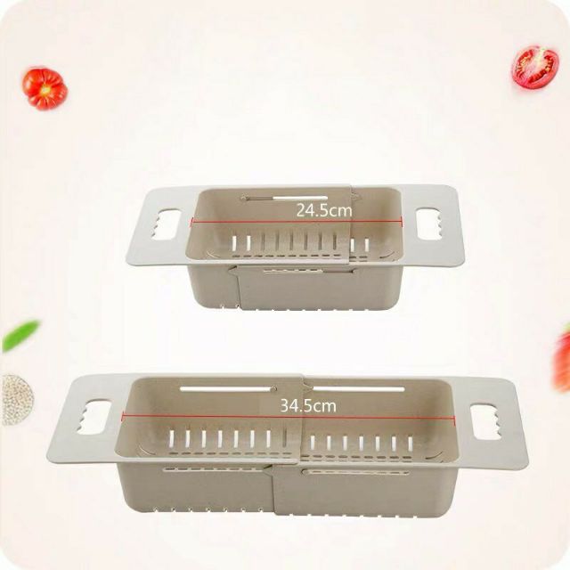 Rổ co giãn để bồn rửa bát chất liệu lúa mạch kéo dài tối đa ra 50cm khi không kéo là 35cm tích hợp được hết các chậu rửa bát