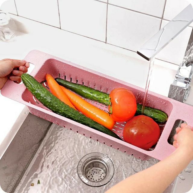 Rổ co giãn để bồn rửa bát chất liệu lúa mạchRổ nhựa gác bồn rửa bát tiện dụng với thiết kế đa năng 2 trong 1, vừa là rổ nhựa đựng đồ hoa quả, rau củ, có chân đế. Khi kéo 2 tay cầm ra có thể đặt ngang bồn rửa để hoa quả, rau củ ráo nước, hỗ trợ tối đa việc rửa bát hay rửa rau, hoa quả, thực phẩm