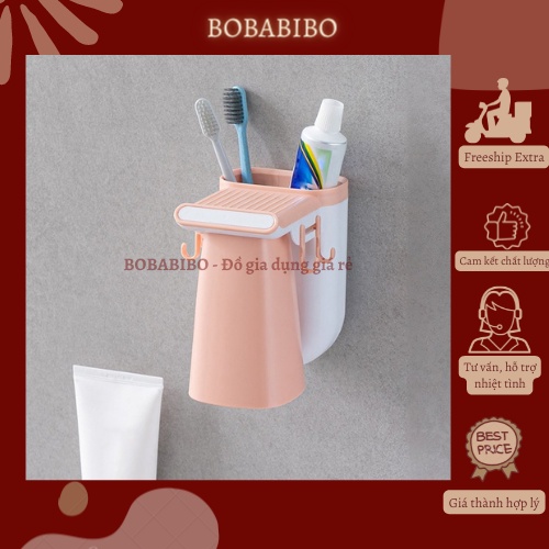 Khay Để Cốc Đánh Răng, Khay Đựng Bàn Chải Đánh Răng Kèm Cốc Đơn Gắn Nam Châm Dán Tường Nhỏ Gọn Chịu Lực Bobabibo