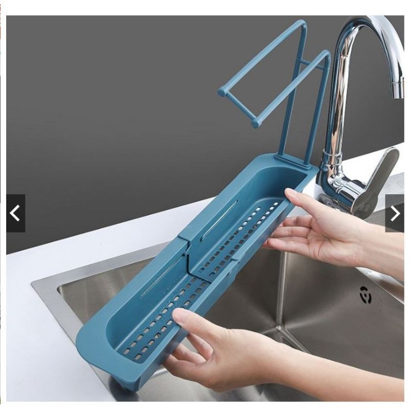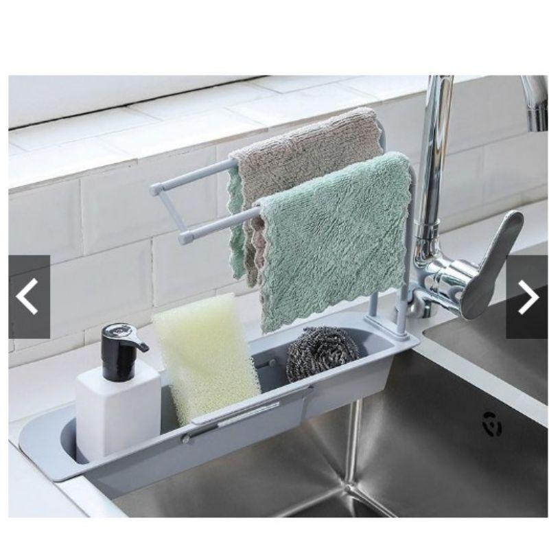 Khay Để Đồ Rửa Bát Có Thể Điều Chỉnh Kèm Thanh Treo Khăn- Kệ nhựa đa năng tiện ích gắn vòi nước vòi sen dùng trong nhà bếp giúp bạn sắp xếp các vật dụng ngăn nắp, gọn gàng, tiết kiệm không gian.