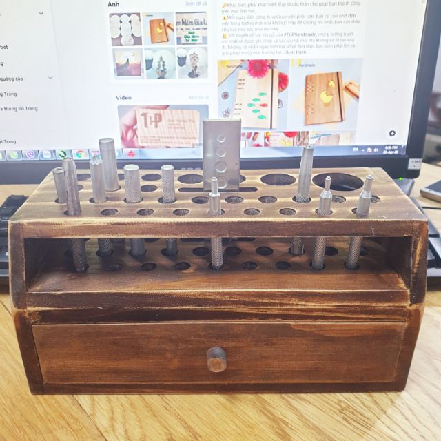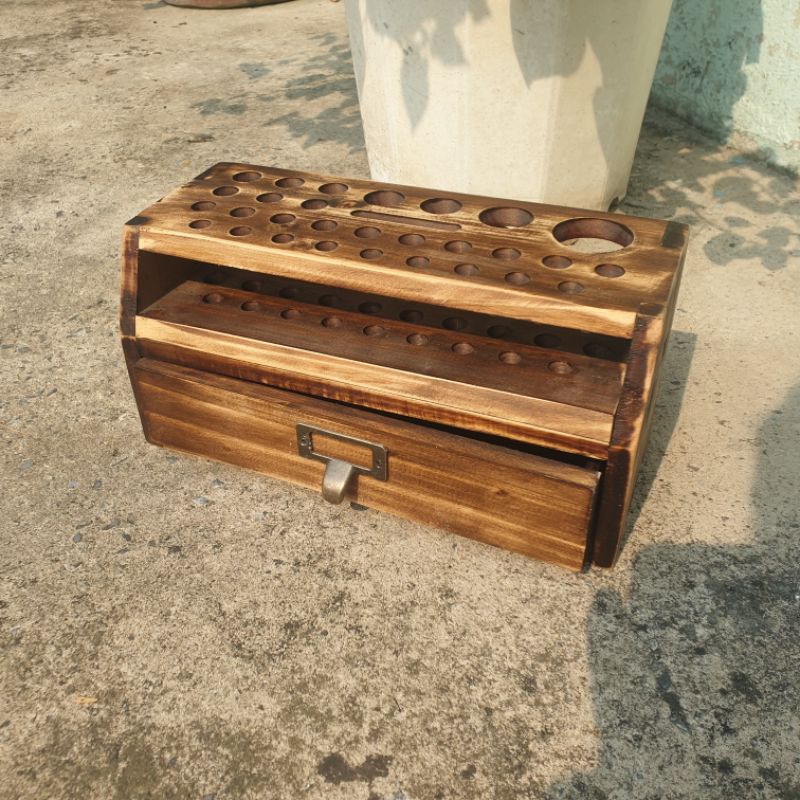 Kệ để tools làm đồ da bằng gỗ thông tự nhiên, sơn màu phong cách vintage, kích thước 25x12x11cm, có học kéo tiện lợi. Phù hợp cho thợ làm đồ da, đồ handmade... Bạn sẽ cảm nhận được sự tiện lợi và gọn gàng khi có kệ này trên bàn làm việc của mình.TGPhandmade nhận làm hàng theo yêu cầu,Quý khách vui lòng nhắn tin cho shop ạ