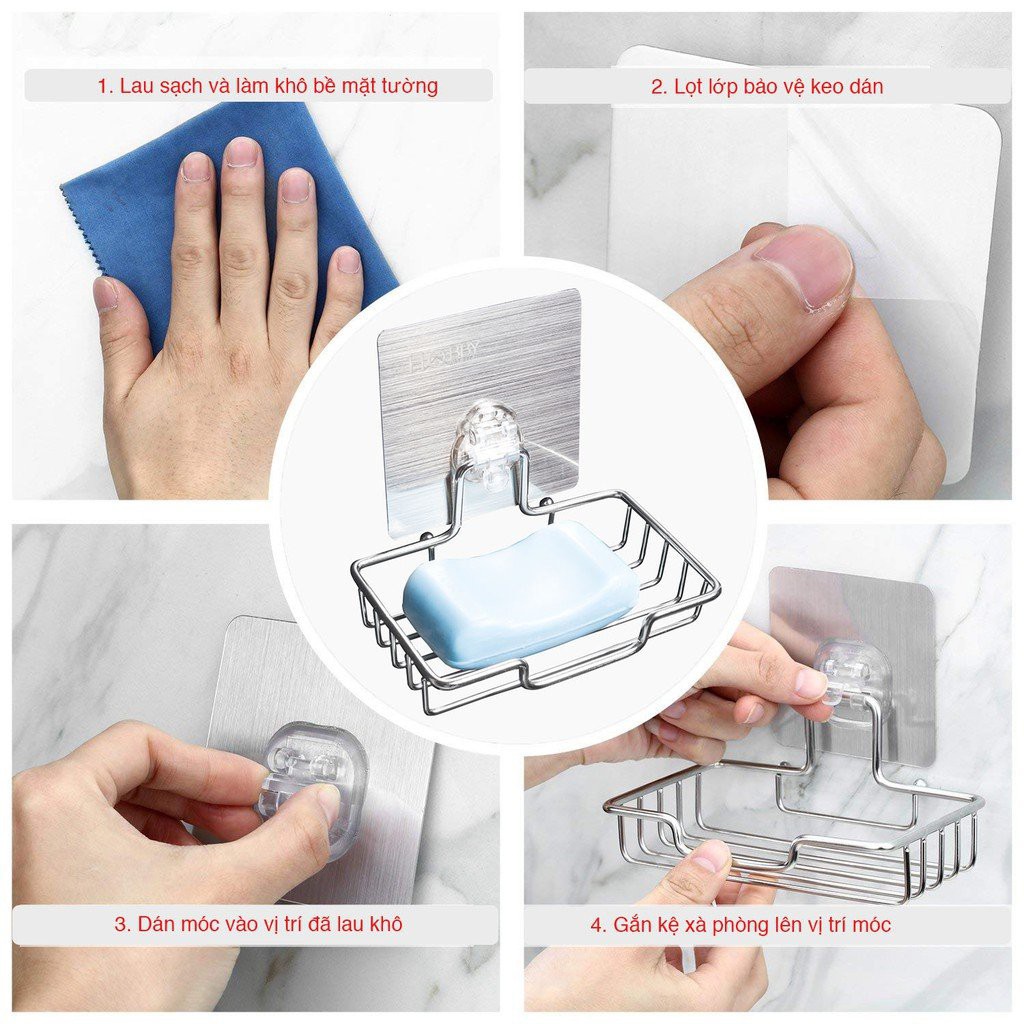 - Bộ sản phẩm gồm 1 khay đựng xà bông + 1 miếng dán tường