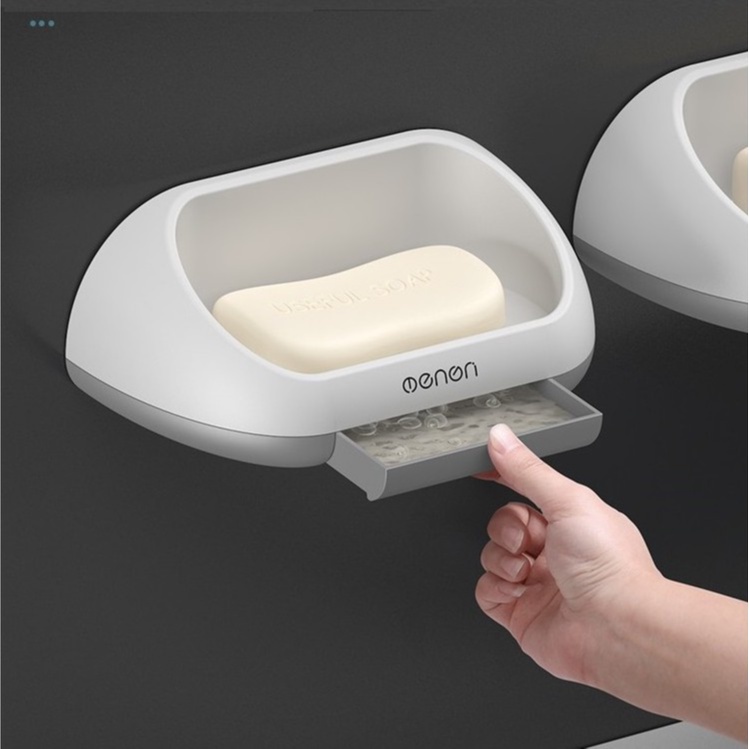 - Bộ sản phẩm gồm 1 khay đựng xà bông + 1 miếng dán tường