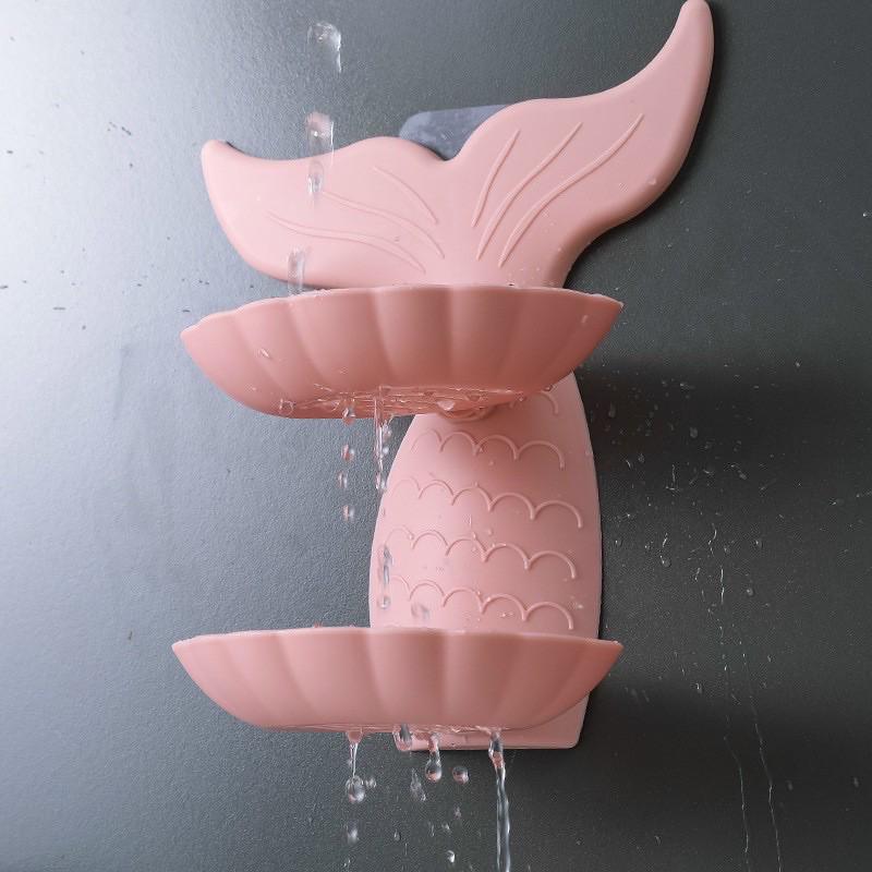 Khay Để Xà Phòng, Xà Bông Tắm Dán Tường 2 Tầng Hình Cá 🔥🔥- Màu sắc: Ngẫu Nhiên