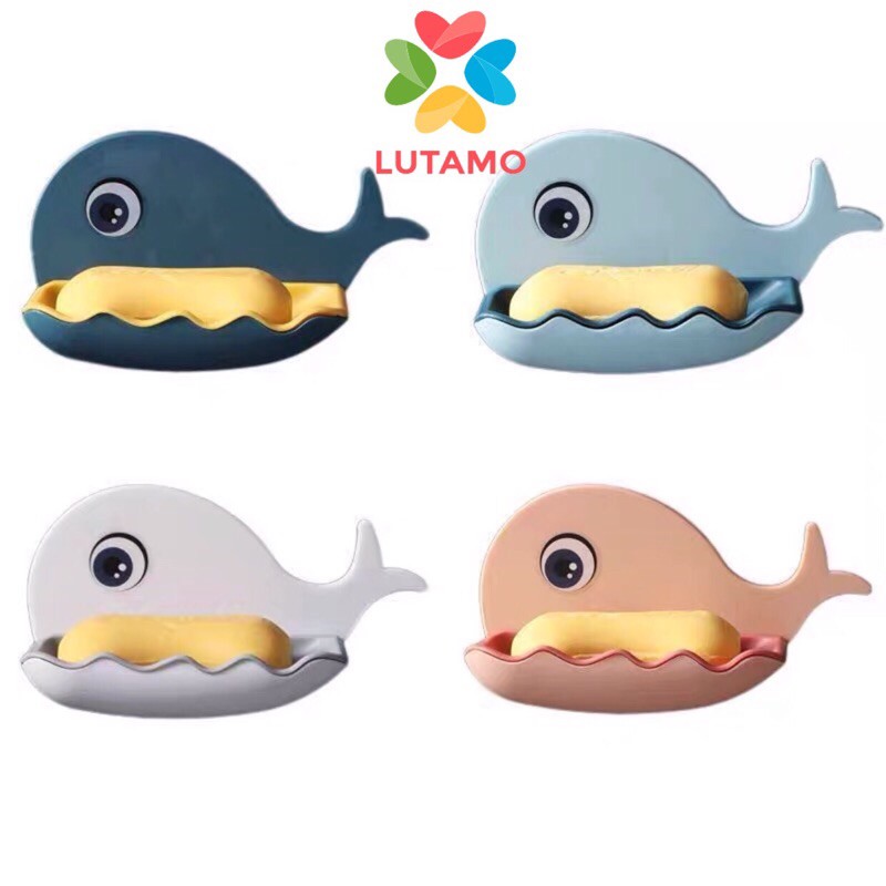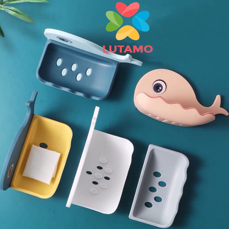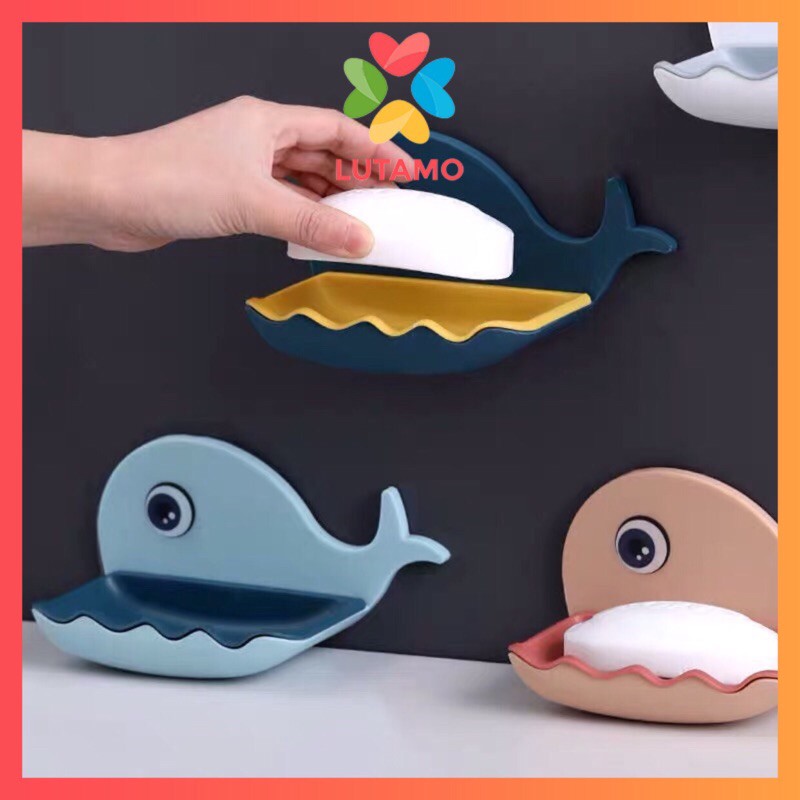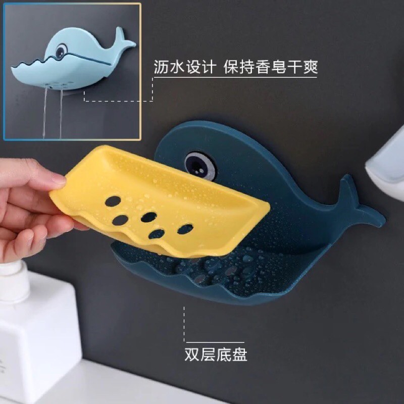Khay Để Xà Phòng, Xà Bông Tắm Dán Tường 2 Tầng Hình Cá Heo