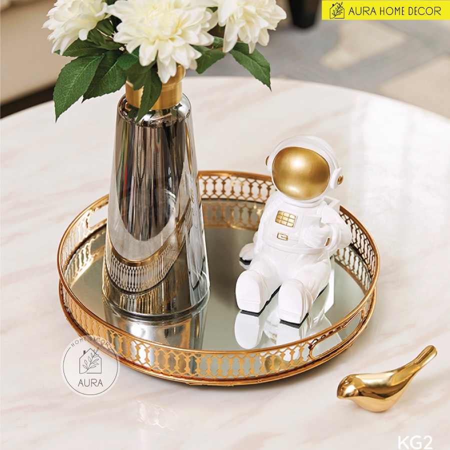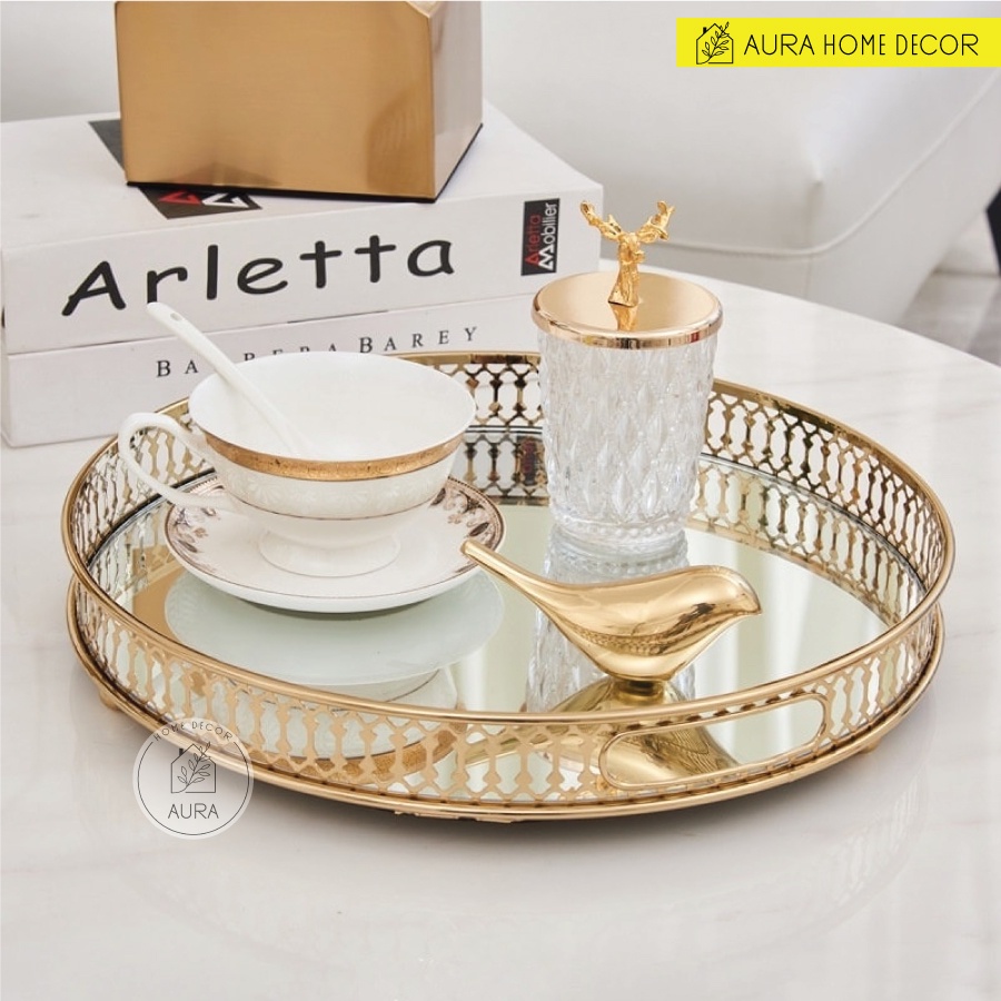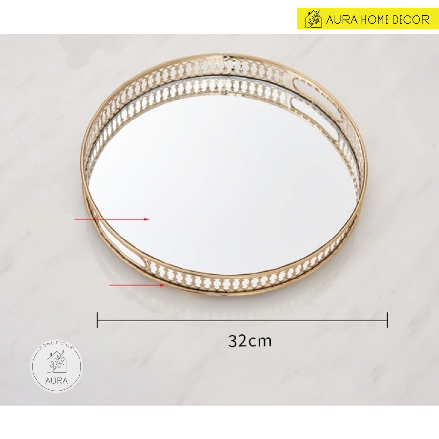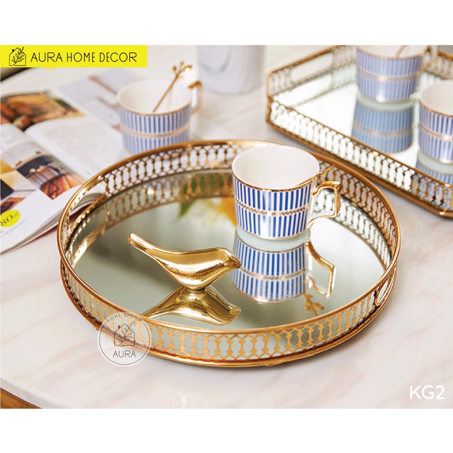 Khay decor mặt tráng gương khung mạ viền vàng sang chảnh - Hình tròn và hình chữ nhật