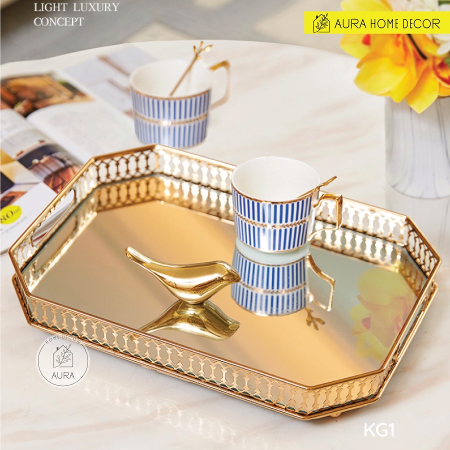✨ Khay decor mặt tráng gương khung mạ viền vàng sang chảnh ✨Khay tráng gương sang chảnh đựng cốc, tách hay làm đồ decor chụp ảnh cũng đẹp xuất sắc.