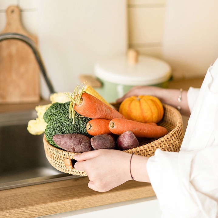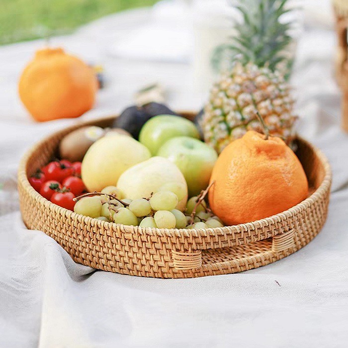 Giới thiệu Khay decor mây tre đan thủ công BAMBOOO ECO giỏ đựng đồ đa năng có tay cầm tiện lợi