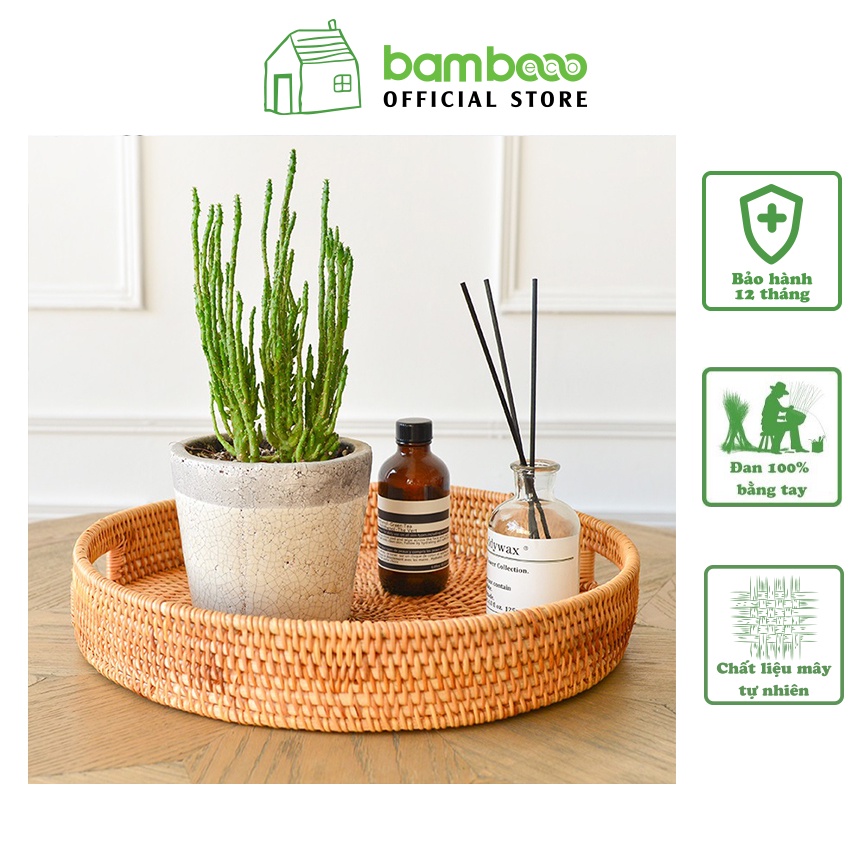 Nhà cửa & Đời sống > Bộ đồ bàn ăn > Khay, tấm lót bàn ăn || [Mã LIFEMALL2503 giảm 15% đơn 99K] Khay decor mây tre đan thủ công BAMBOOO ECO giỏ đựng đồ đa năng có tay cầm tiện lợiCòn hàng