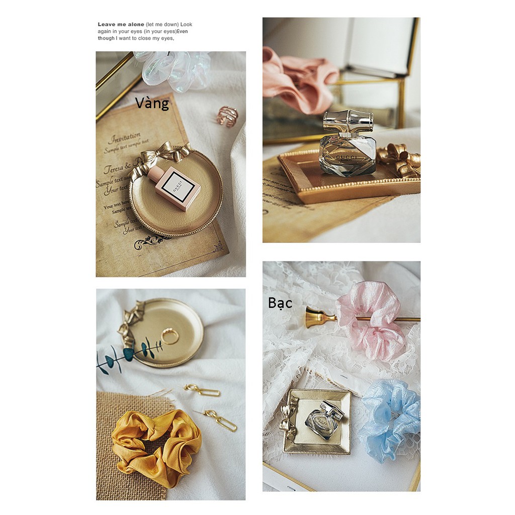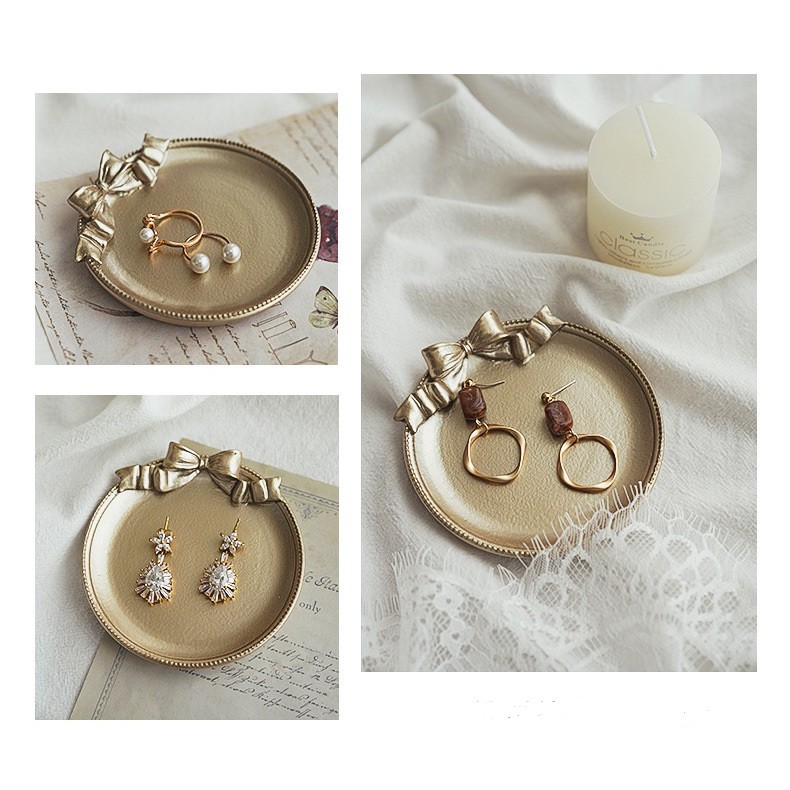 Khay đựng mỹ phẩm hoặc phụ kiện trang sức theo phong cách vintageKhay được mạ lớp chống gỉ nên các bạn yên tâm về độ bền ạ
