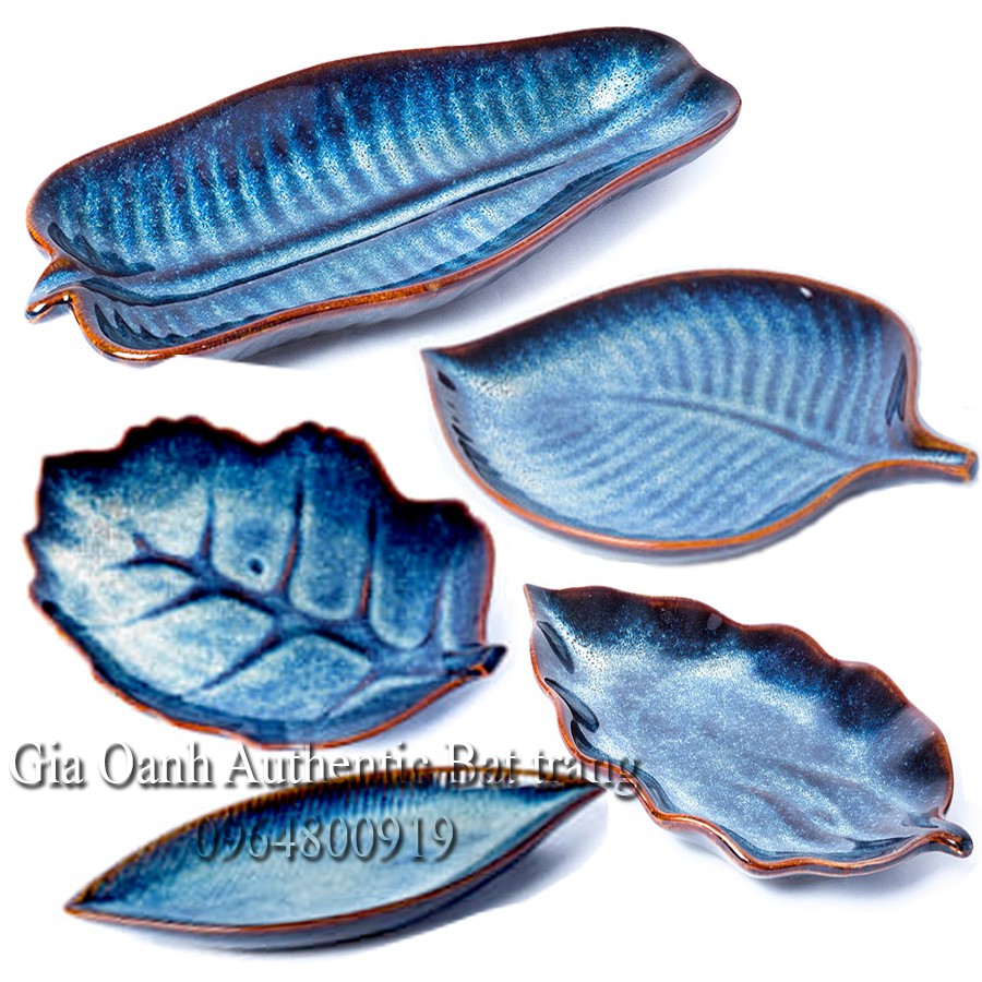 Sản phẩm khay, đĩa lá của Gia Oanh Authentic Bát tràng bao gồm đĩa là xoài, đía là nho, đĩa lá chuối, đĩa lá bỏng, đĩa lá nhọn, đĩa sao, đĩa kim cương ...kích thước cụ thể như sau
