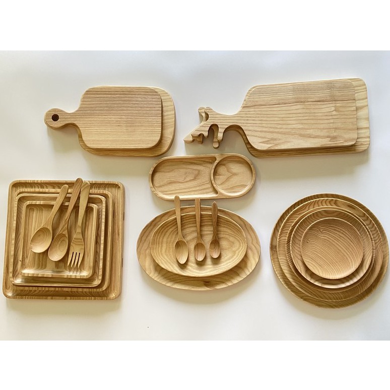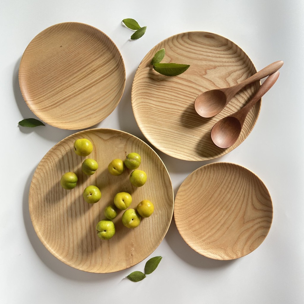 Khay, Đĩa , Thớt , Thìa gỗ Tần bì nguyên khối chất lượng cao màu sáng đựng thức ăn, hoa quả , decor Mỹ Nghệ Mart