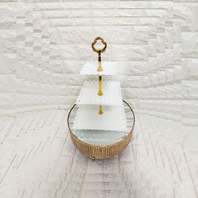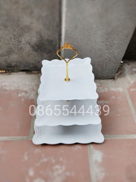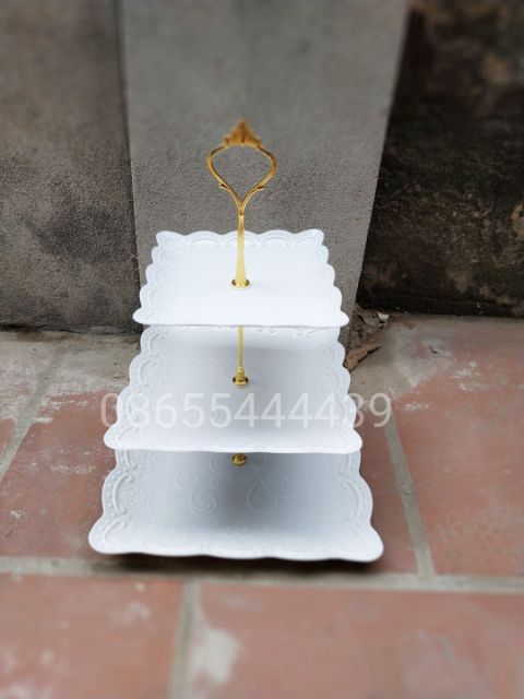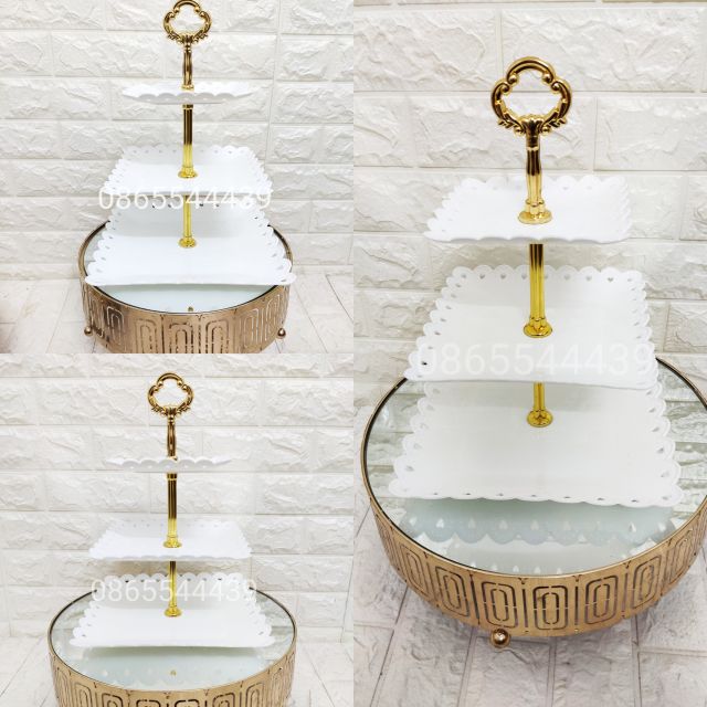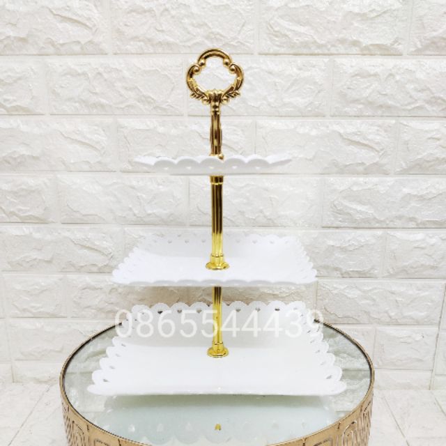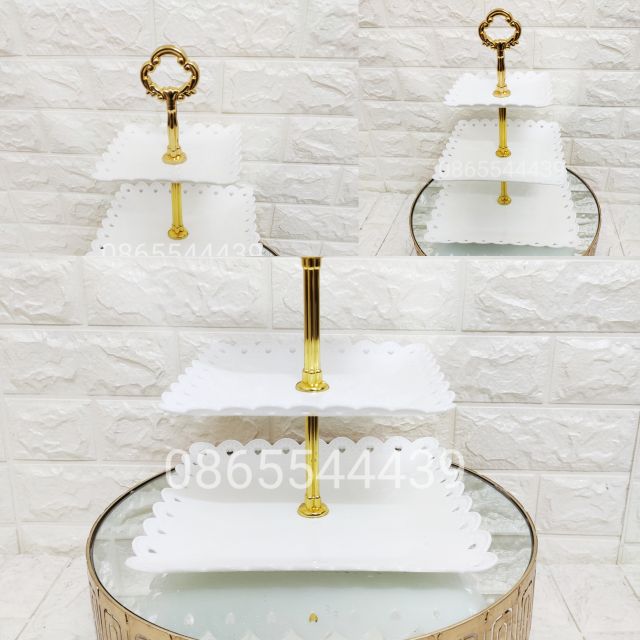Nhà cửa & Đời sống > Bộ đồ bàn ăn > Dĩa || Khay đĩa vuông 3 tầng trụ vàngCòn hàng
