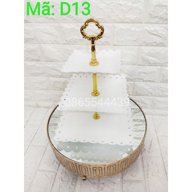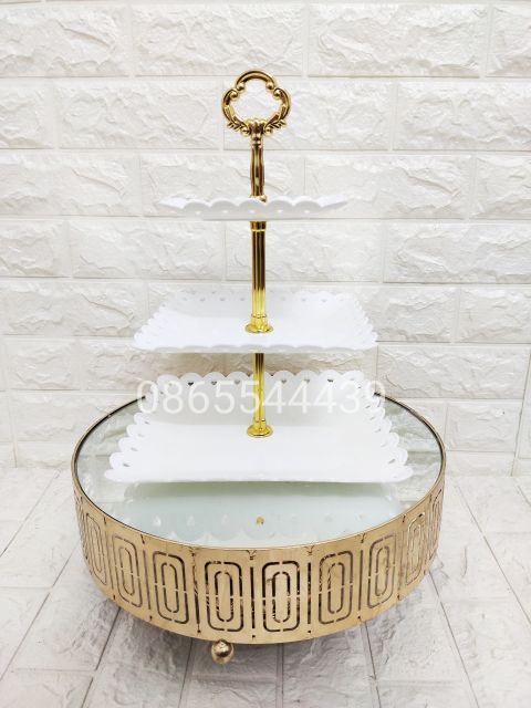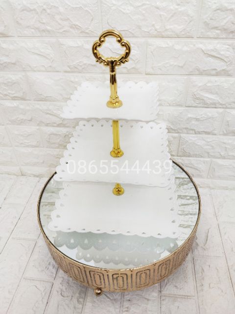 Giới thiệu Khay đĩa vuông 3 tầng trụ vàng